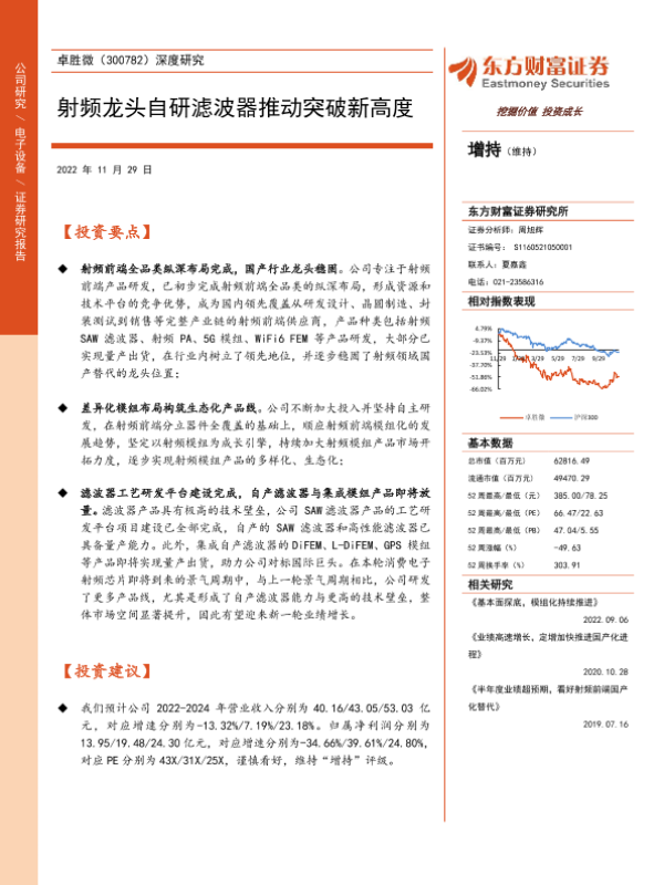 【东方财富证券】【20221129】20221129-东方财富证券-卓胜微-300782.SZ-深度研究:射频龙头自研滤波器推动突破新高度-29页