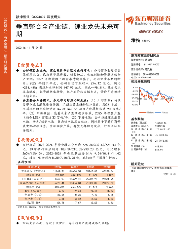 【东方财富证券】【20221129】20221129-东方财富证券-赣锋锂业-002460.SZ-深度研究:垂直整合全产业链,锂业龙头未来可期-26页