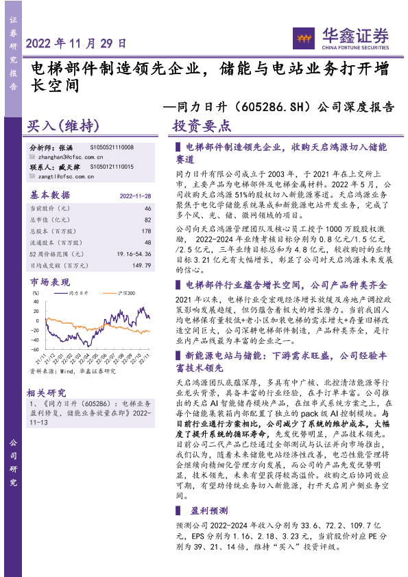 【华鑫证券】【20221129】同力日升(605286.SH)公司深度报告:电梯部件制造领先企业,储能与电站业务打开增长空间-26页