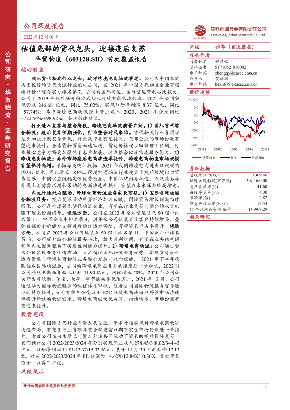【东亚前海证券】【20221201】估值底部的货代龙头,迎接疫后复苏——华贸物流(603128.SH)首次覆盖报告-38页