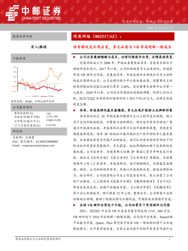 【中邮证券】【20221201】恺英网络-002517.SZ-传奇游戏龙头再出发,多元品类与VR布局迎新一轮成长-30页