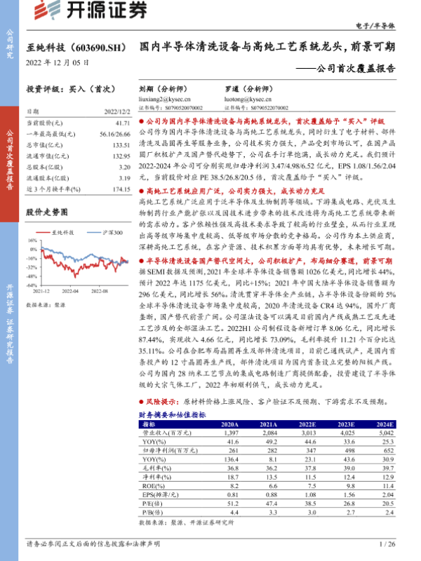【开源证券】【20221205】至纯科技-公司首次覆盖报告:国内半导体清洗设备与高纯工艺系统龙头,前景可期-26页