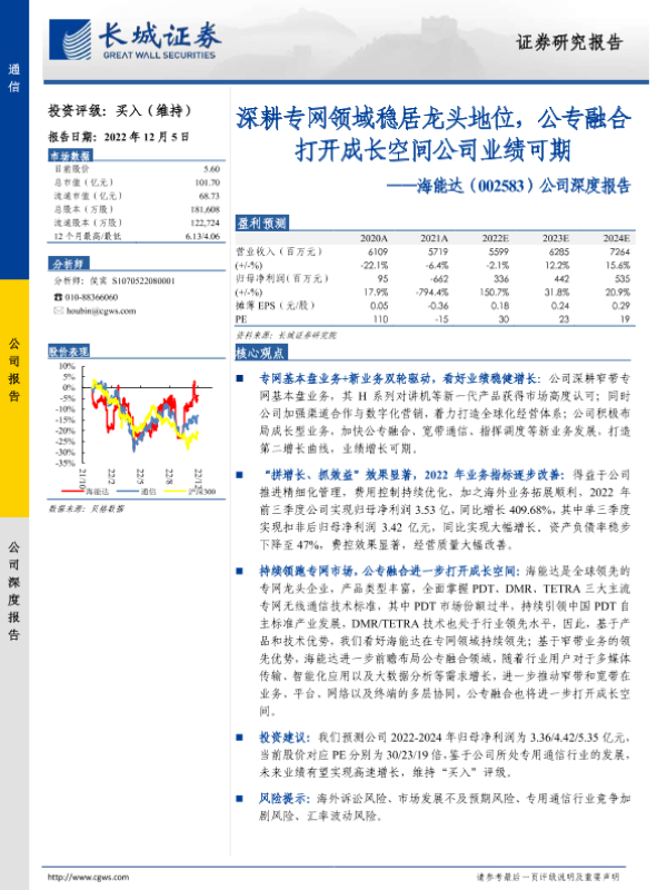 【长城证券】【20221205】20221205-长城证券-海能达-002583.SZ-公司深度报告:深耕专网领域稳居龙头地位,公专融合打开成长空间公司业绩可期-23页
