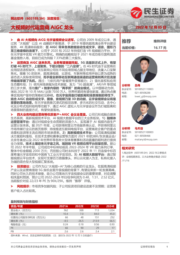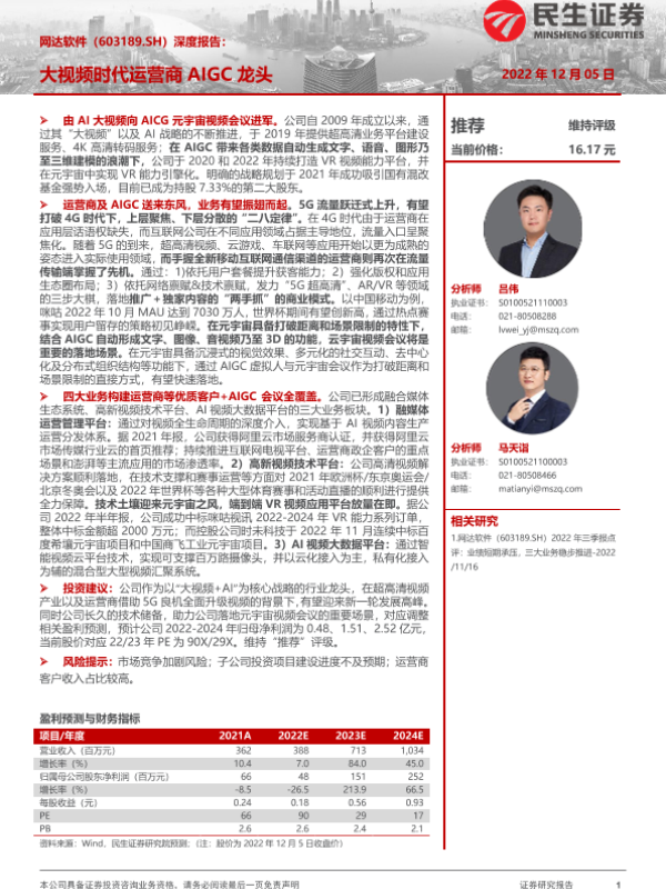 【民生证券】【20221205】20221205-民生证券-网达软件-603189.SH-深度报告:大视频时代运营商AIGC龙头-28页
