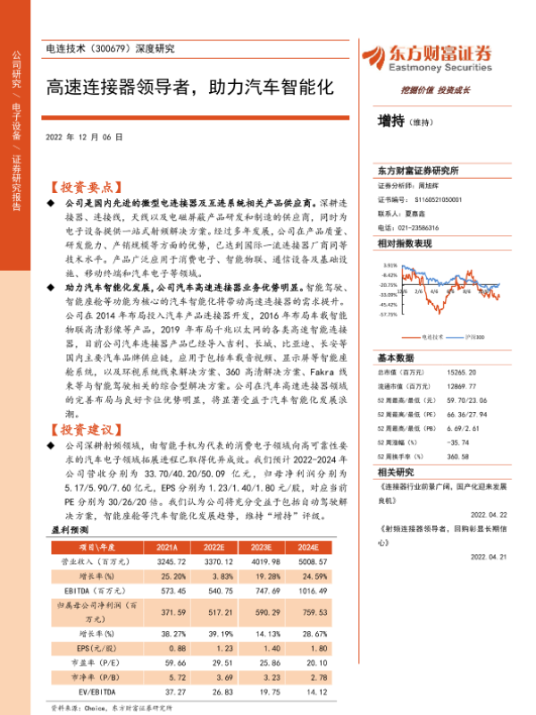 【东方财富证券】【20221206】电连技术:高速连接器领导者,助力汽车智能化-25页