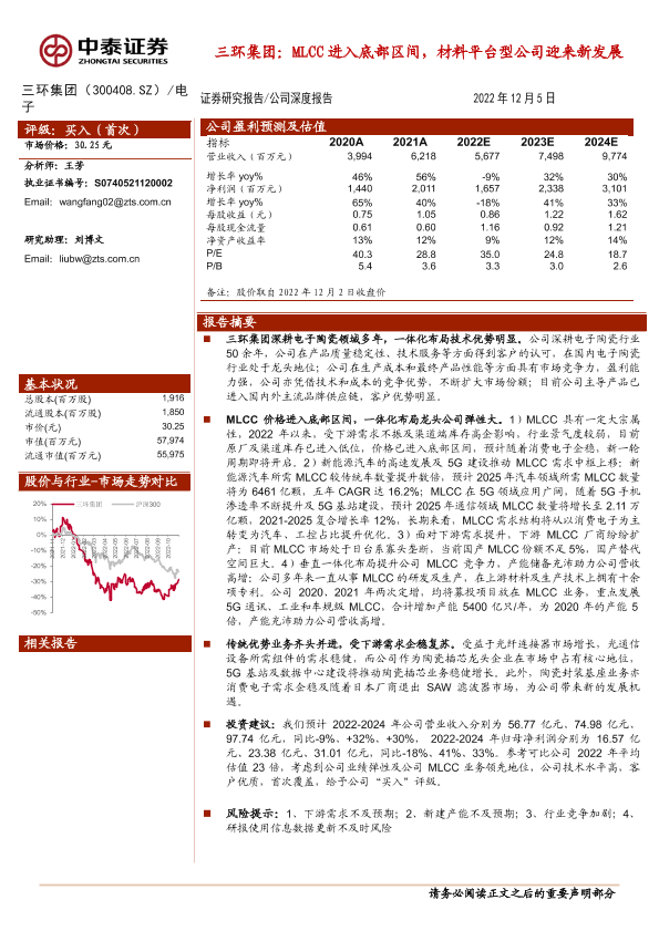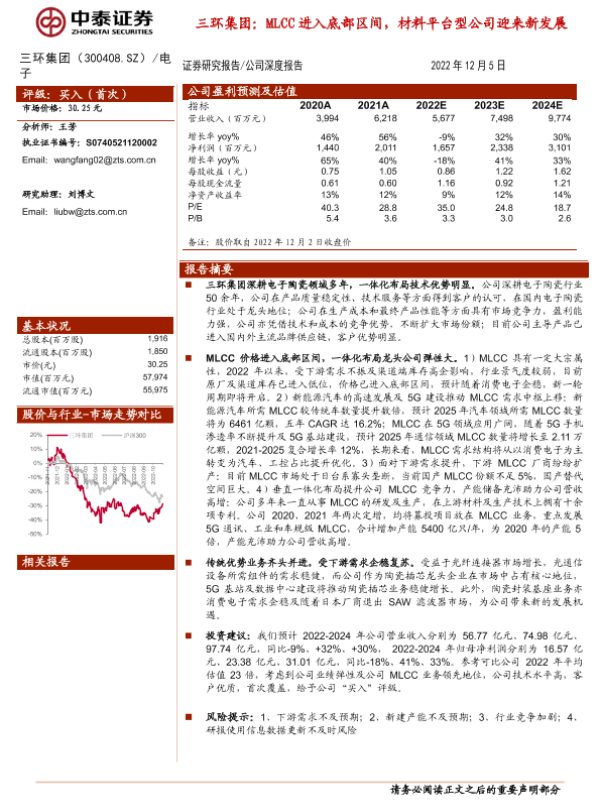 【中泰证券】【20221205】三环集团:MLCC进入底部区间,材料平台型公司迎来新发展-36页