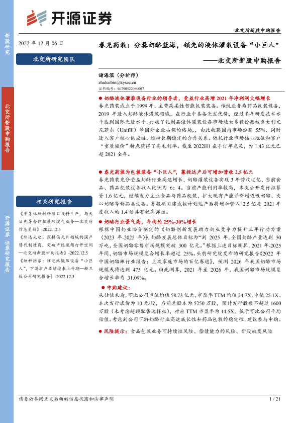 【开源证券】【20221206】春光药装:分羹奶酪蓝海,领先的液体灌装设备“小巨人”-21页