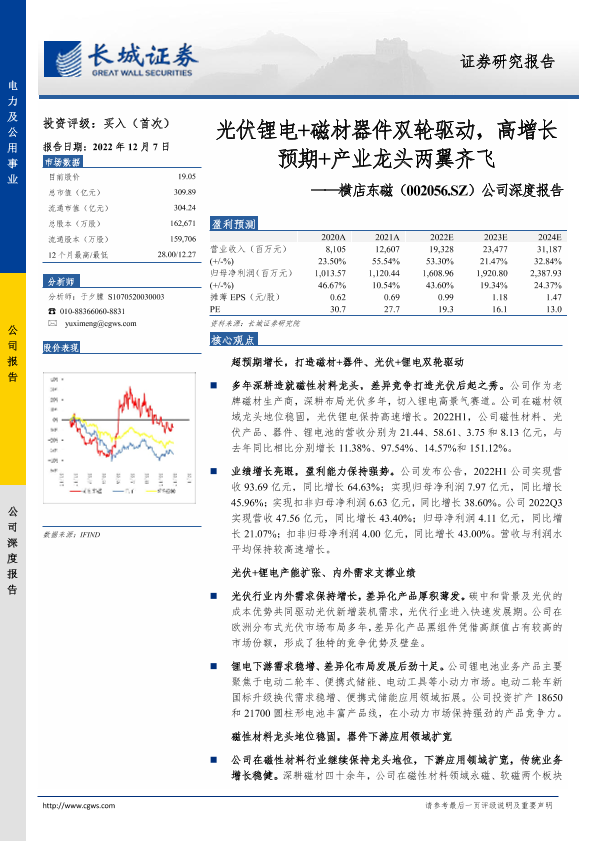 【长城证券】【20221207】光伏锂电+磁材器件双轮驱动,高增长预期+产业龙头两翼齐飞——横店东磁(002056.SZ)公司深度报告-25页