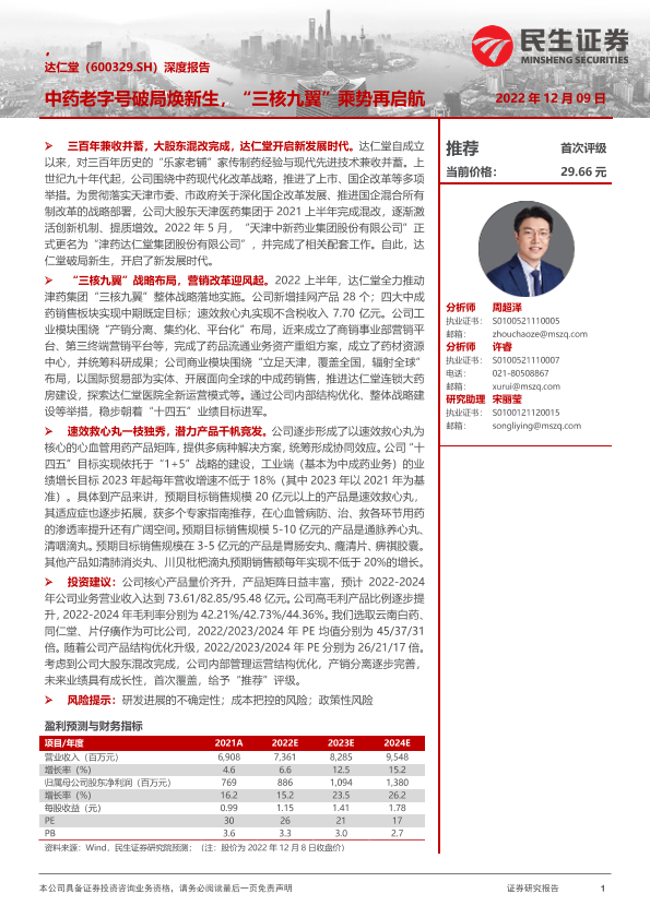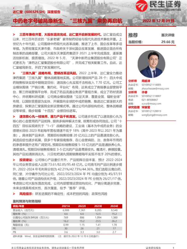【民生证券】【20221209】20221209-民生证券-达仁堂-600329.SH-深度报告:中药老字号破局焕新生,“三核九翼”乘势再启航-28页