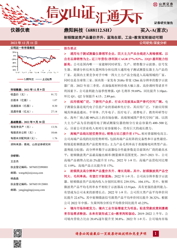 【山西证券】【20221211】鼎阳科技-射频微波类产品量价齐升、蓝海在即,工业+教育双轮驱动可期-28页