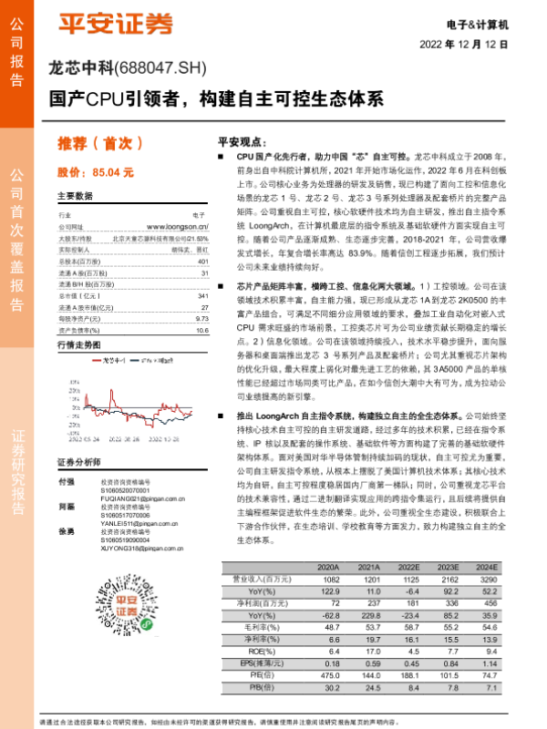 【平安证券】【20221212】龙芯中科-688047.SH-国产CPU引领者,构建自主可控生态体系-25页