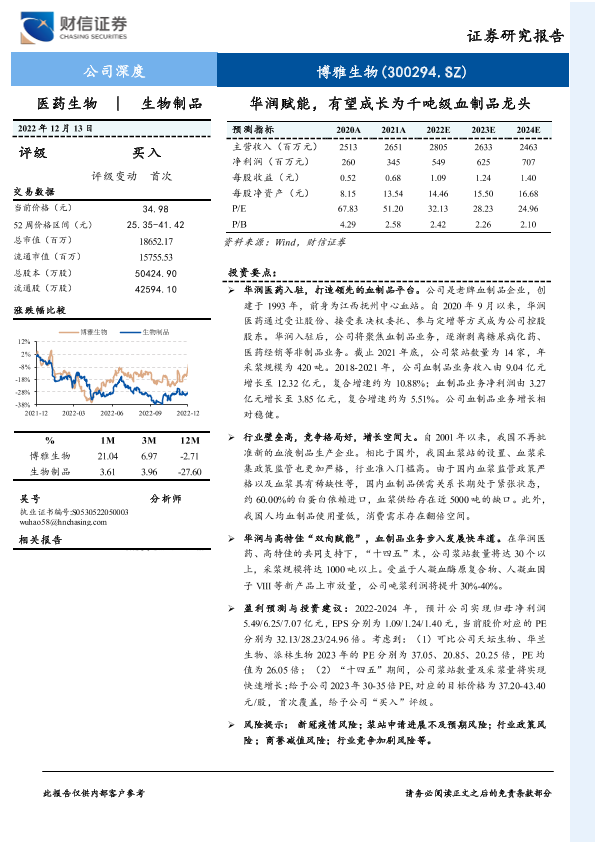 【财信证券】【20221213】华润赋能,有望成长为千吨级血制品龙头-26页