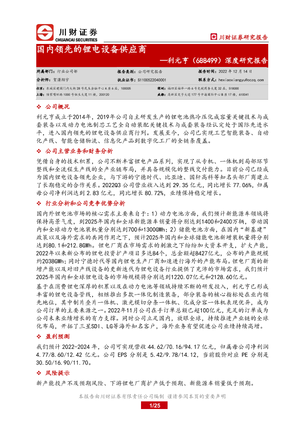 【川财证券】【20221214】国内领先的锂电设备供应商-25页