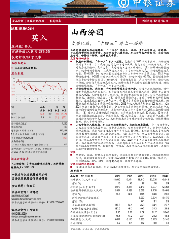【中银证券】【20221214】山西汾酒:大势已成,“十四五”再上一层楼-26页