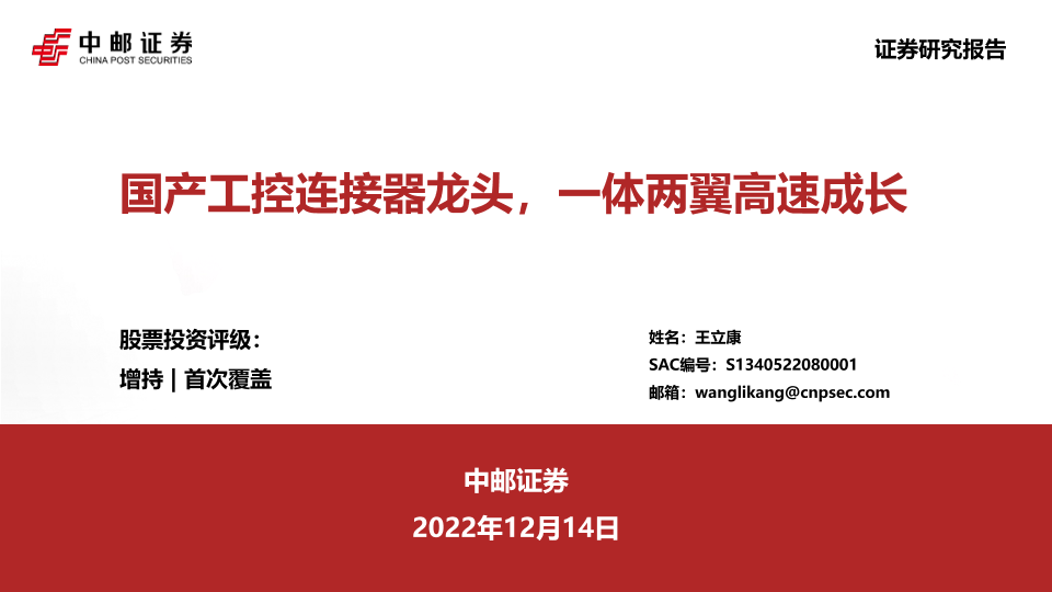 【中邮证券】【20221214】国产工控连接器龙头,一体两翼高速成长-36页