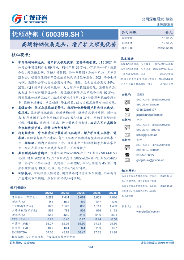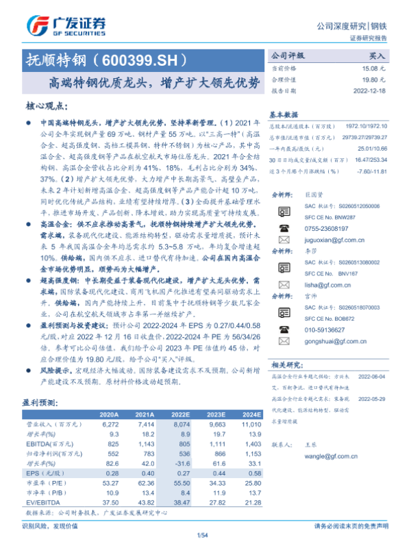 【广发证券】【20221218】抚顺特钢(600399.SH)高端特钢优质龙头,增产扩大领先优势-54页