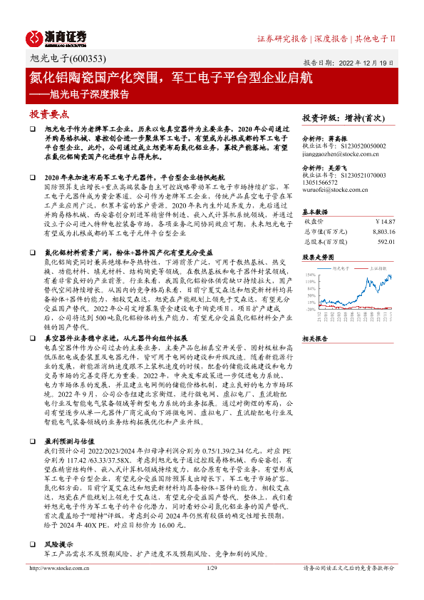 【浙商证券】【20221219】旭光电子深度报告:氮化铝陶瓷国产化突围,军工电子平台型企业启航-29页