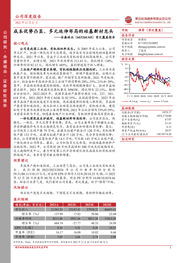 【东亚前海证券】【20221221】成本优势凸显、多元延伸布局的硅基新材龙头——合盛硅业(603260.SH)首次覆盖报告-25页