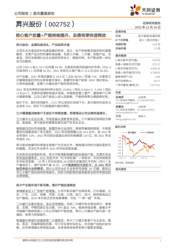 【天风证券】【20221220】昇兴股份-核心客户放量+产能持续提升,业绩有望快速释放-27页