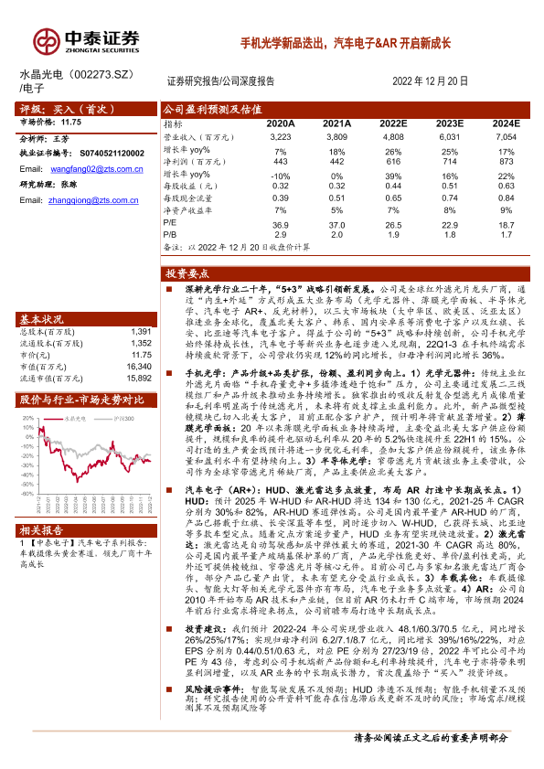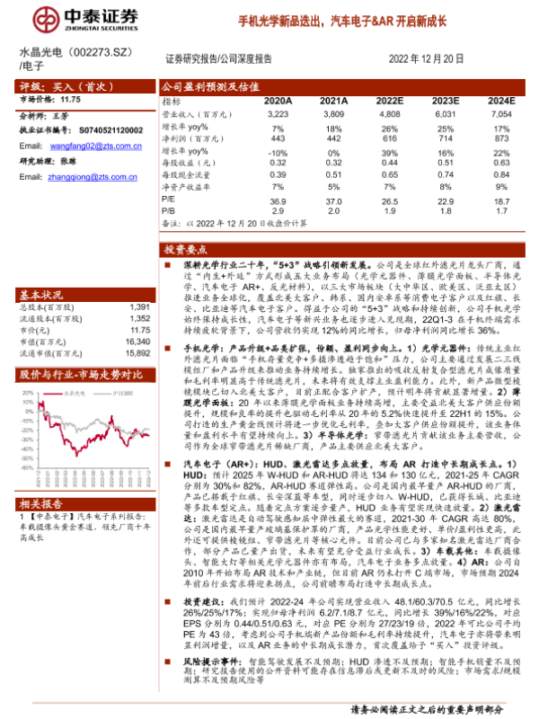【中泰证券】【20221220】20221220-中泰证券-水晶光电-002273.SZ-手机光学新品迭出,汽车电子&AR开启新成长-31页