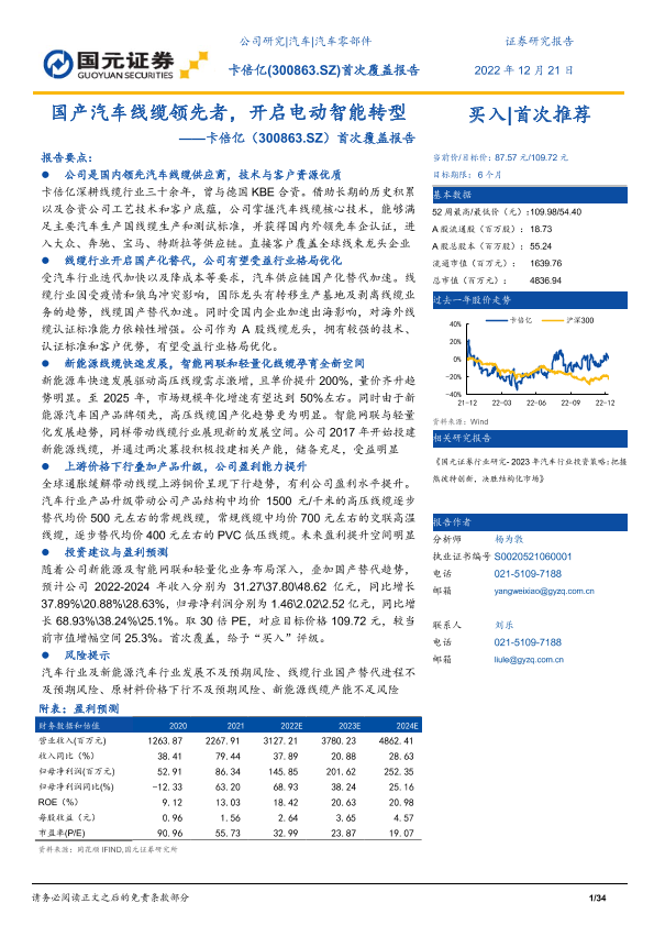 【国元证券】【20221221】国产汽车线缆领先者,开启电动智能转型——卡倍亿(300863.SZ)首次覆盖报告-34页