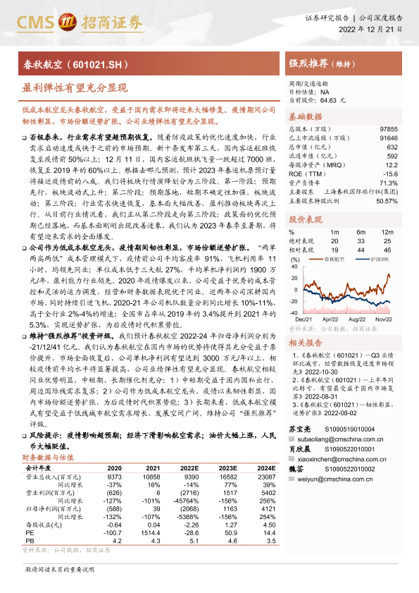 【海通证券】【20221221】春秋航空-601021.SH-盈利弹性有望充分显现-19页