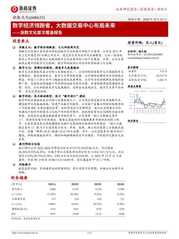 【浙商证券】【20221221】浙数文化首次覆盖报告:数字经济领跑者,大数据交易中心布局未来-27页