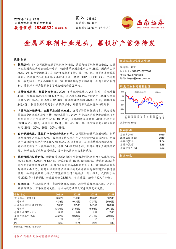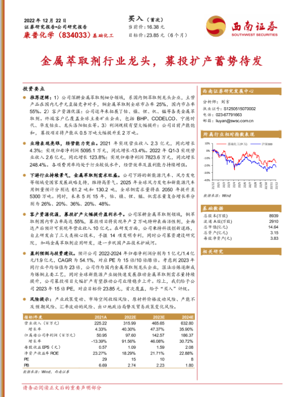 【西南证券】【20221222】金属萃取剂行业龙头,募投扩产蓄势待发-32页