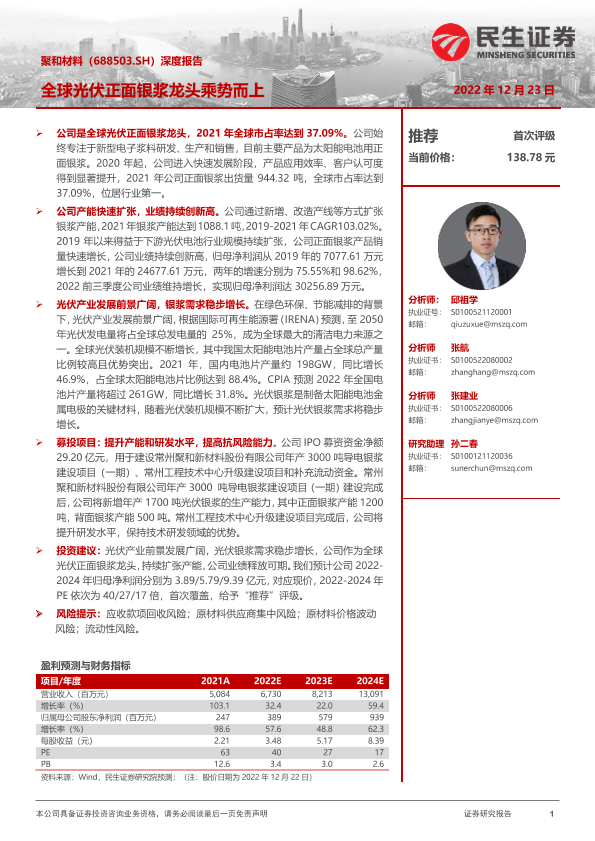 【民生证券】【20221223】20221223-民生证券-聚和材料-688503.SH-深度报告:全球光伏正面银浆龙头乘势而上-34页