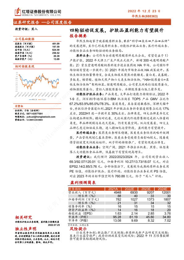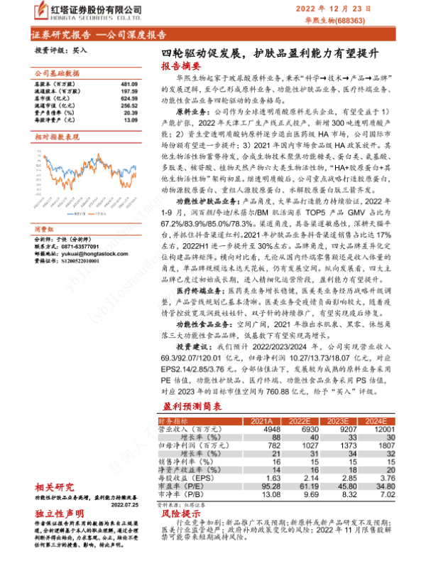 功能性护肤品 华熙生物 四轮驱动 盈利能力 透明质酸