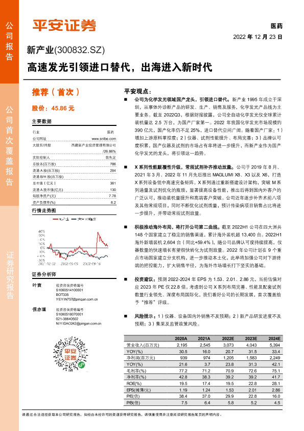 化学发光 医药 海外市场 进口替代 高速发光