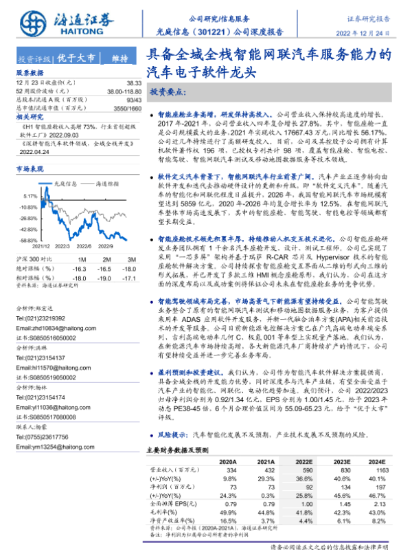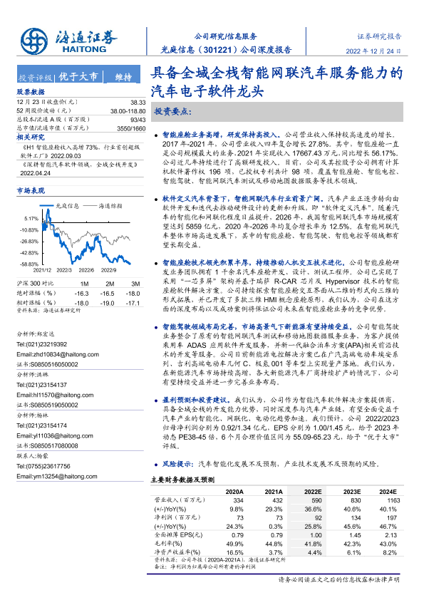 【海通证券】【20221224】光庭信息-301221.SZ-公司深度报告:具备全域全栈智能网联汽车服务能力的汽车电子软件龙头-24页