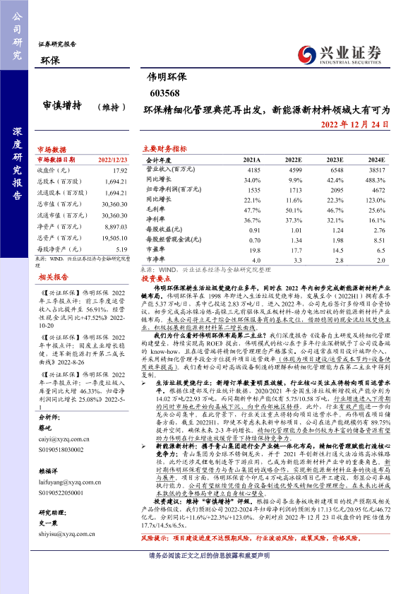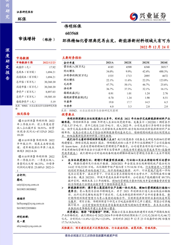【兴业证券】【20221224】环保精细化管理典范再出发,新能源新材料领域大有可为-34页