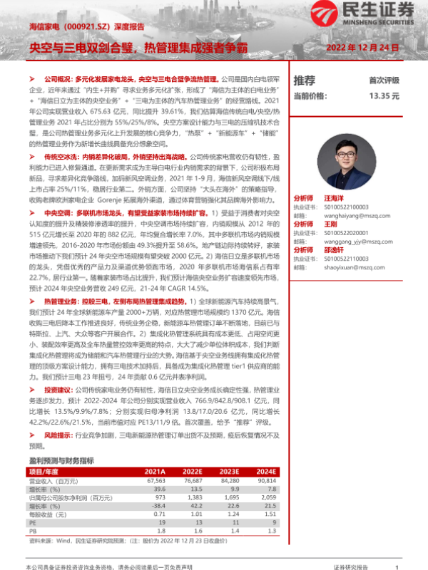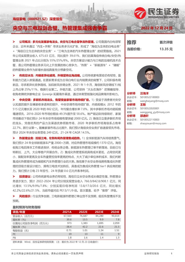 【民生证券】【20221224】20221224-民生证券-海信家电-000921.SZ-深度报告:央空与三电双剑合璧,热管理集成强者争霸-40页