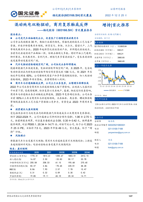 【国元证券】【20221225】福达股份(603166.SH)首次覆盖报告:混动纯电双轮驱动,商用复苏触底反弹-27页