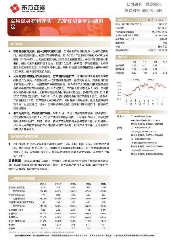 【东方证券】【20221226】20221226-东方证券-华秦科技-688281.SH-军用隐身材料龙头,先发优势明显后劲仍足-30页