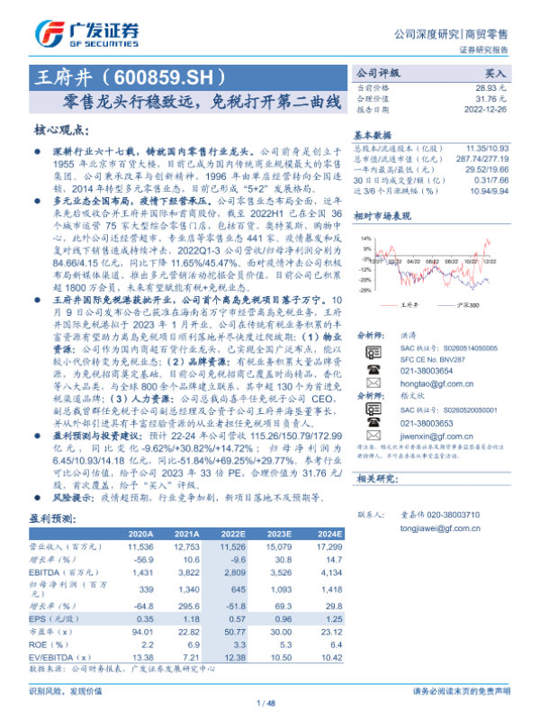 【广发证券】【20221226】王府井(600859.SH)零售龙头行稳致远,免税打开第二曲线-48页