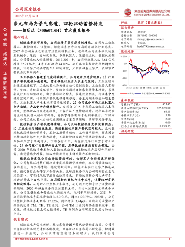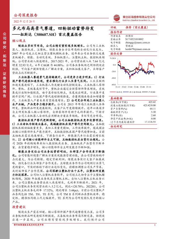 【东亚前海证券】【20221226】多元布局高景气赛道,四轮驱动蓄势待发——拓斯达(300607.SH)首次覆盖报告-39页