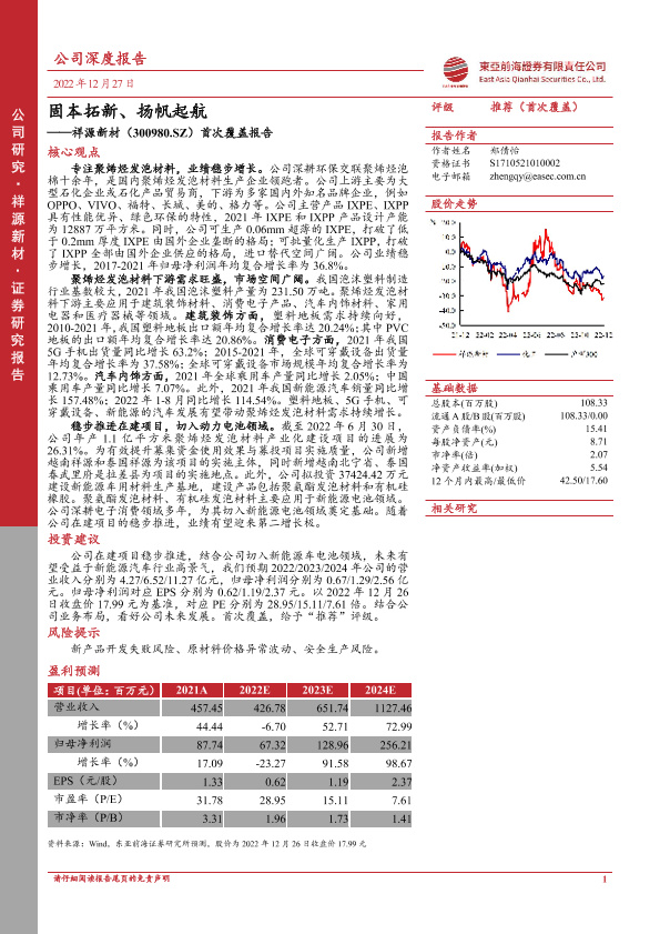 【东亚前海证券】【20221227】固本拓新、扬帆起航——祥源新材(300980.SZ)首次覆盖报告-27页