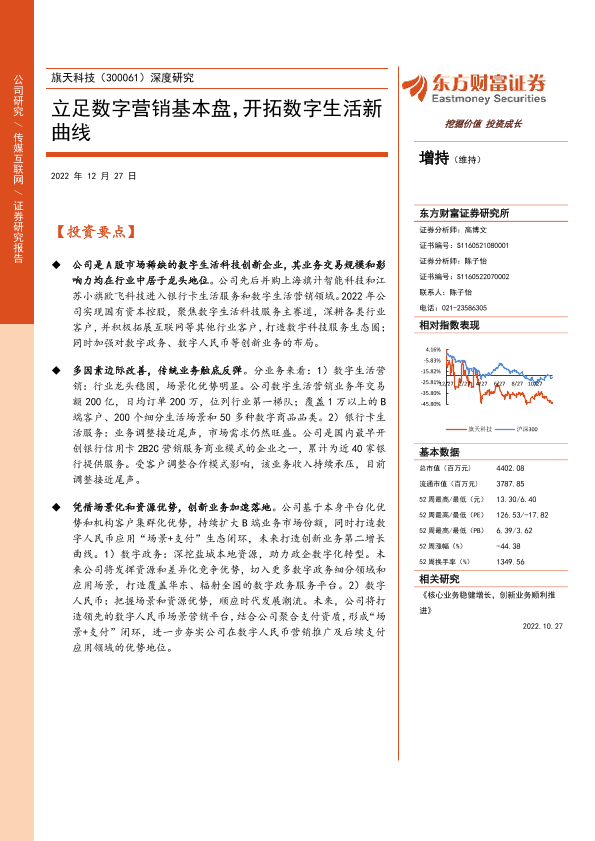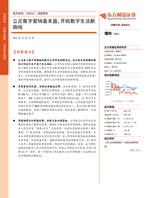 【东方财富证券】【20221227】旗天科技(300061)深度研究:立足数字营销基本盘,开拓数字生活新曲线-26页
