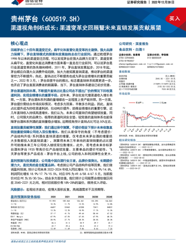 渠道变革 白酒行业 直销发展 证券研究报告 贵州茅台