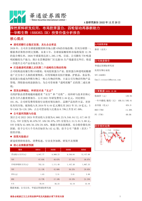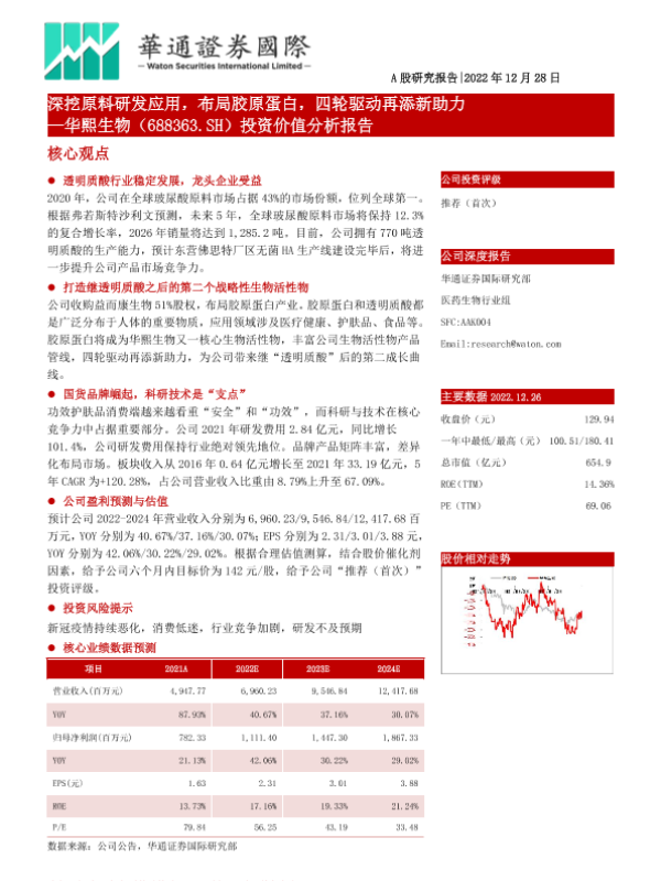 【华通证券国际】【20221228】深挖原料研发应用,布局胶原蛋白,四轮驱动再添新助力 —华熙生物(688363.SH)投资价值分析报告-45页