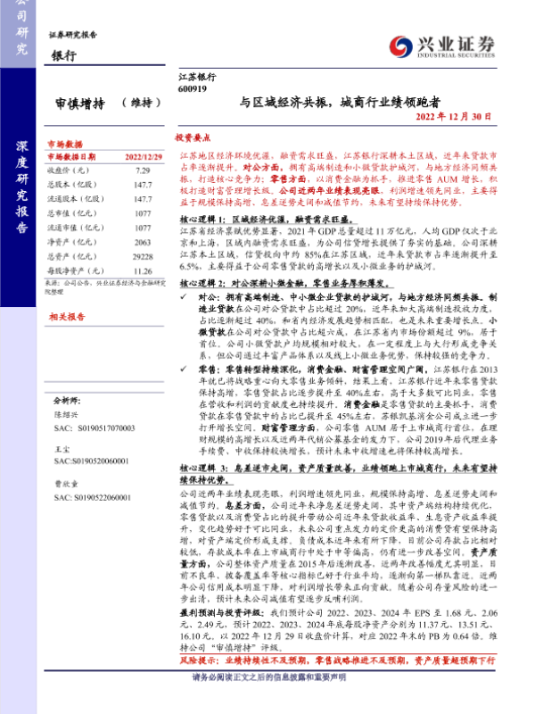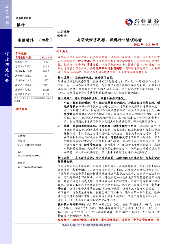 【兴业证券】【20221230】江苏银行 600919 - 与区域经济共振,城商行业绩领跑者-38页