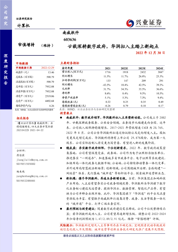 【兴业证券】【20221230】廿载深耕数字政府,华润拟入主踏上新起点-26页
