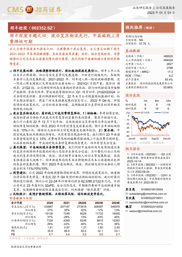 【海通证券】【20230101】顺丰深度专题之四:疫后复苏物流先行,中高端线上消费弹性可期-17页