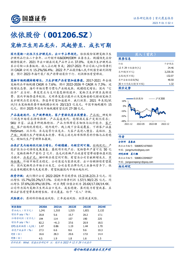 【国盛证券】【20230102】依依股份-宠物卫生用品龙头,风起势至、成长可期-31页