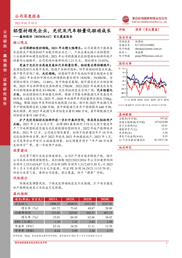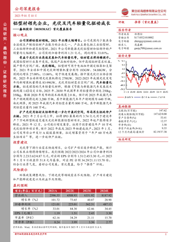 【东亚前海证券】【20230110】20230110-东亚前海证券-鑫铂股份-003038.SZ-首次覆盖报告:铝型材领先企业,光伏及汽车轻量化驱动成长-30页