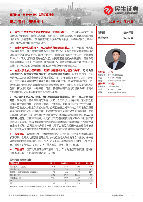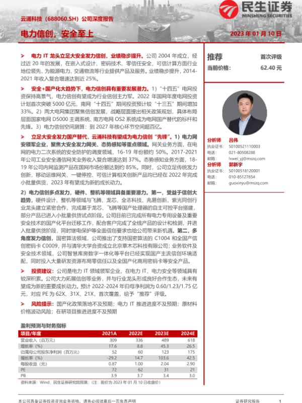 【民生证券】【20230110】20230110-民生证券-云涌科技-688060.SH-公司深度报告:电力信创,安全至上-27页