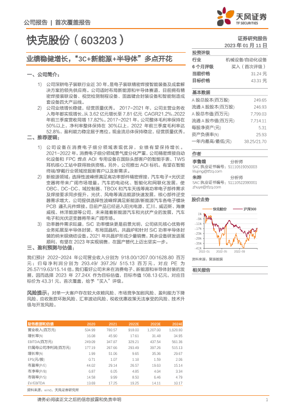 【天风证券】【20230111】快克股份-603203.SH-业绩稳健增长,“3C+新能源+半导体”多点开花-29页