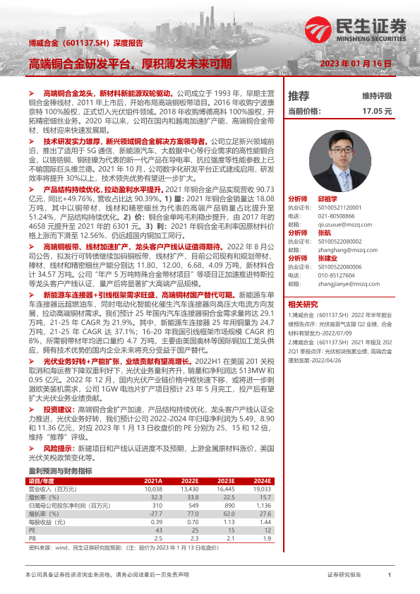 【民生证券】【20230116】博威合金-601137.SH-深度报告:高端铜合金研发平台,厚积薄发未来可期-39页